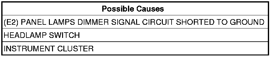 - Repair the (E2) Panel Lamps Dimmer Signal Circuit for a short to ground.