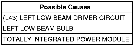 - Repair the (L43) Left Low Beam Driver circuit for a short to ground condition.