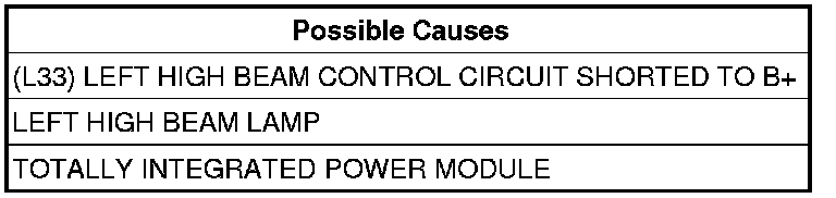 - Repair the (L33) Left High Beam Control circuit for a short to battery condition.