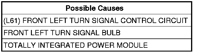 - Repair the (L61) Front Left Turn Signal Control circuit for a short to ground.