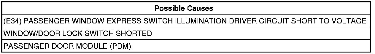 3. (E34) PASSENGER WINDOW EXPRESS SWITCH ILLUMINATION DRIVER CIRCUIT SHORT TO VOLTAGE
