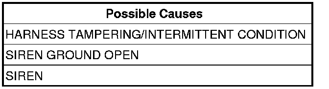 Inspect the wiring harness to the siren for any signs of tampering or intermittent condition.