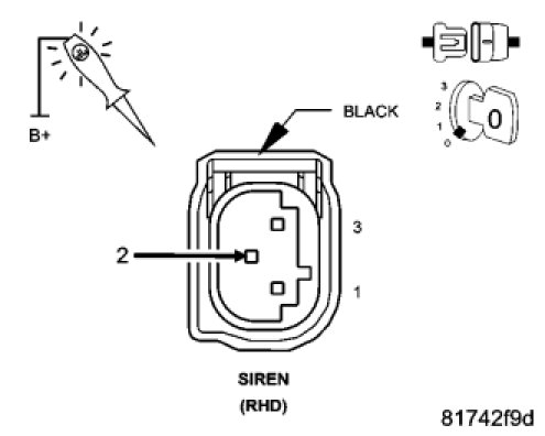 3. CHECK THE FUSED B(+) CIRCUIT AT THE SIREN