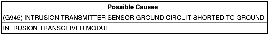 - Repair the (G945) Intrusion Transmitter Sensor Ground circuit for a short to ground.
