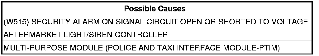 - Repair the (W515) Security Alarm On Signal circuit for a short to voltage.
