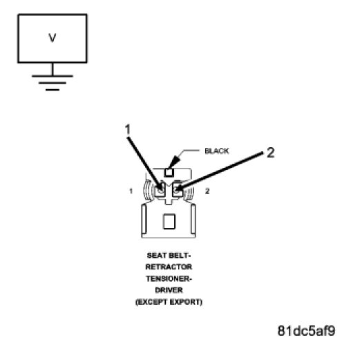 Measure the voltage of the (R505) Driver Seat Belt Retractor Tensioner Line 1 circuit between the Driver Seat Belt Retractor Tensioner connector and ground.