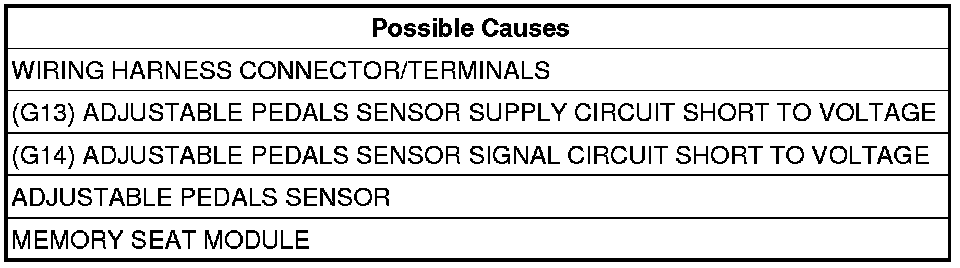 3. (G13) ADJUSTABLE PEDALS SENSOR SUPPLY CIRCUIT SHORT TO VOLTAGE