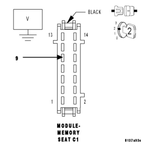 Measure the voltage of the (G14) Adjustable Pedals Sensor Signal circuit at the Memory Seat Module C1 harness connector.