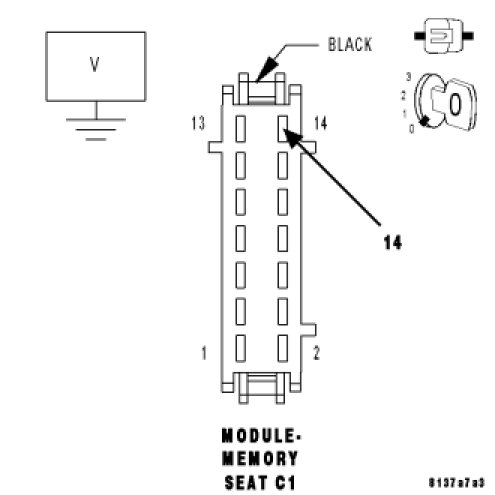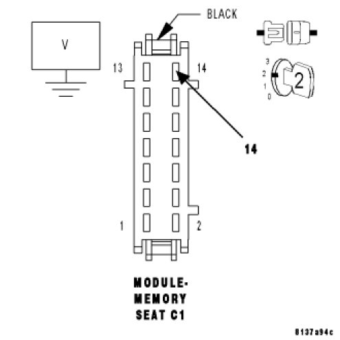 Measure the voltage of the (G14) Adjustable Pedals Sensor Signal circuit and ground at the Memory Seat Module C1 harness connector.