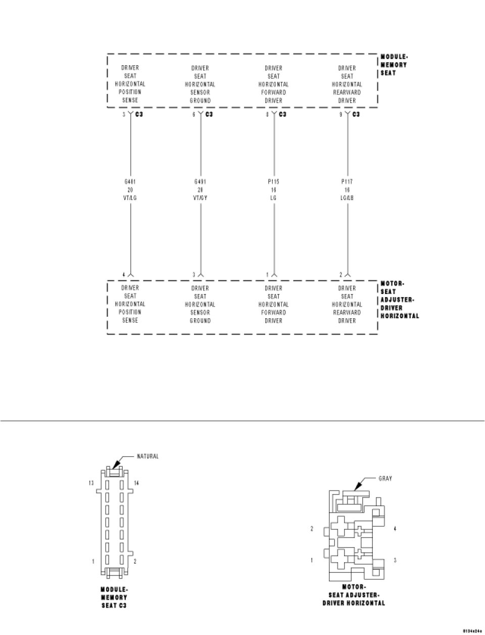 Measure the resistance of the (G401) Driver Seat Horizontal Position Sense circuit at the Driver Horizontal Seat Adjuster Motor connector to the C3 connector.