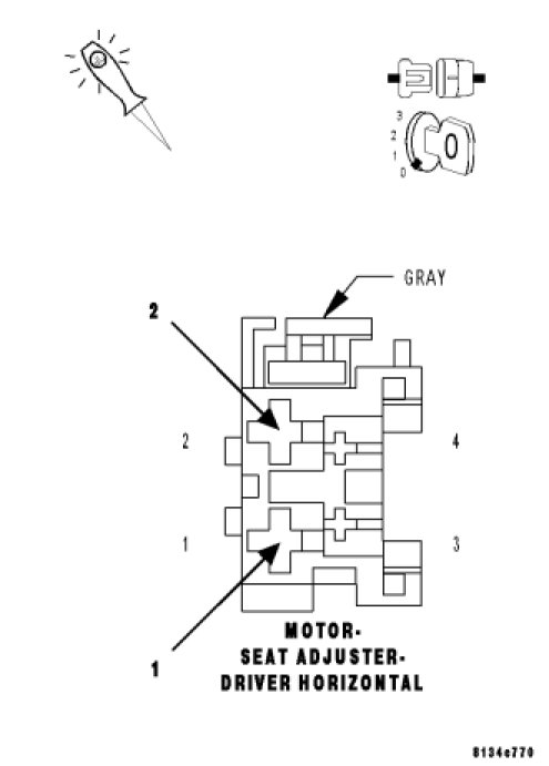 Using a 12-volt test light connect one lead to the (G401) Driver Seat Horizontal Position Sense circuit and the other lead to Driver Seat Horizontal Sensor Ground at the Driver Horizontal Seat Adjuster Motor connector.