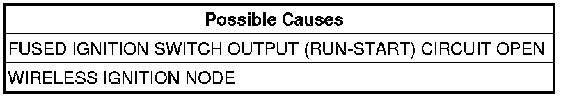 NOTE: Check the related fuses to the Fused Ignition Switch Output (Run-Start) circuit. If the fuse is found to be open, repair the circuit for a shorted condition.