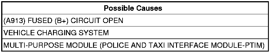 Measure the voltage of the (A913) Fused (B+) circuit in the Multi-Purpose Module (Police And Taxi Interface Module-PTIM) harness connector.