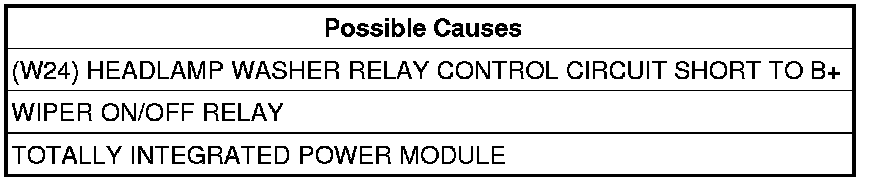 - Repair the (W24) Headlamp Washer Relay Control circuit for a short to B+.