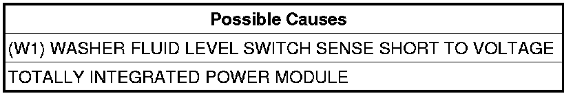 2. W1 WASHER FLUID LEVEL SENSOR CONTROL CIRCUIT SHORT TO VOLTAGE