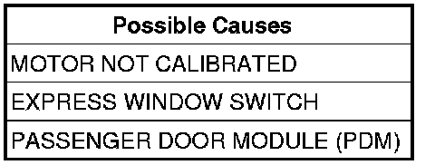 B2577-PASSENGER WINDOW NOT CALIBRATED/LOST CALIBRATION - PDM