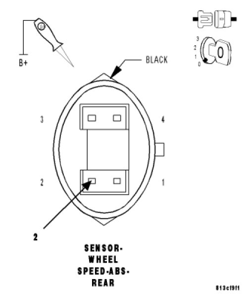 Using a 12-volt test light connected to 12-volts, probe the (B1) Right Rear WSS Signal circuit.