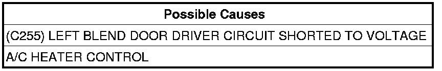 If the A/C Heater Control detects a short to voltage on the (C255) Left Blend Door Driver circuit.