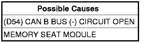 The Memory Seat Module detects the (D54) CAN B Bus (-) circuit is open.