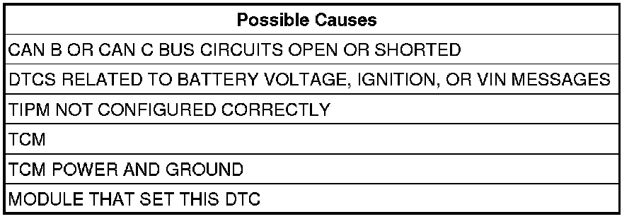 NOTE: Check for TIPM configuration, CAN B or C hardware electrical, VIN Missing/Mismatch, battery or ignition related DTCs.