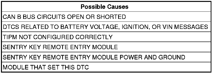 NOTE: Check for TIPM configuration, CAN B or C hardware electrical, VIN Missing/Mismatch, battery or ignition related DTCs.