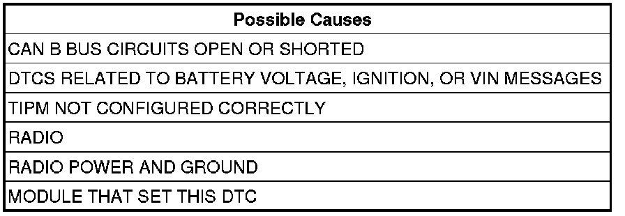 NOTE: Check for TIPM configuration, CAN B or C hardware electrical, VIN Missing/Mismatch, battery or ignition related DTCs.