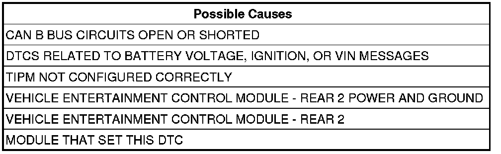 Bus messages not received from the Vehicle Entertainment Control Module - Rear 2 (VES2) for approximately 2 to 5 seconds.