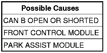 Park Assist Module supply voltage between 9-16 volts. Ignition in Run/Start.