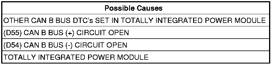 - Repair the (D55) CAN B Bus (+) circuit for an open.
