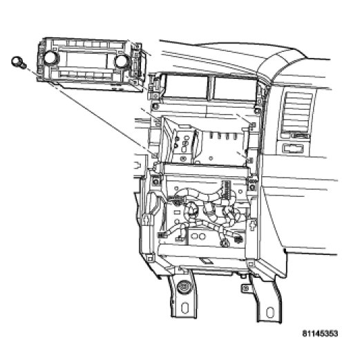 1. Connect the electrical harness and antenna cable (3) to radio (1).