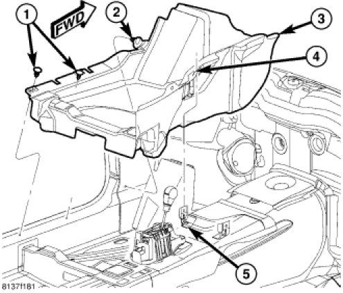 6. Reinstall the center console onto the front floor panel transmission tunnel. Floor Console - Installation.