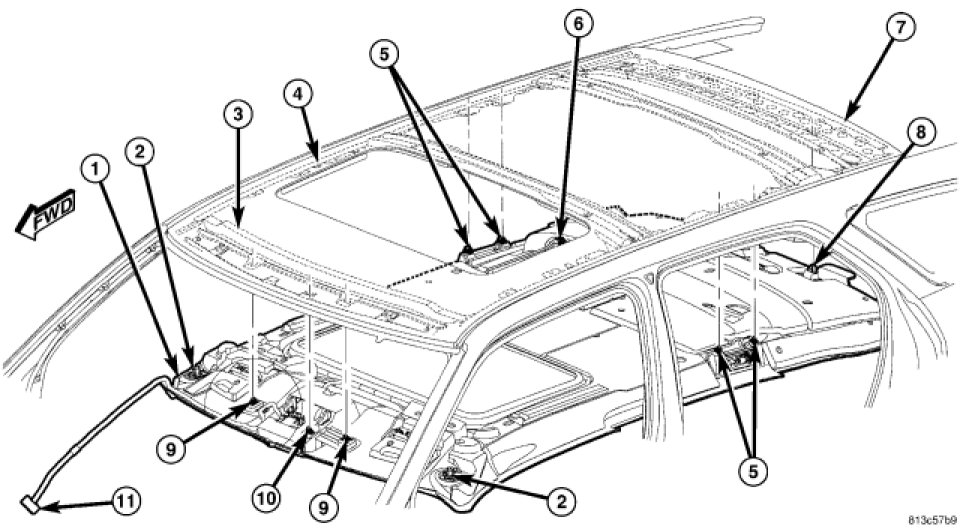 7. If the vehicle is so equipped, reinstall the trim welt onto the headliner sunroof opening.