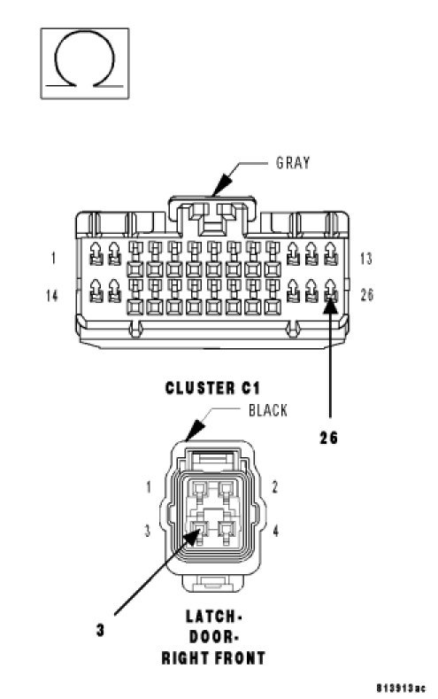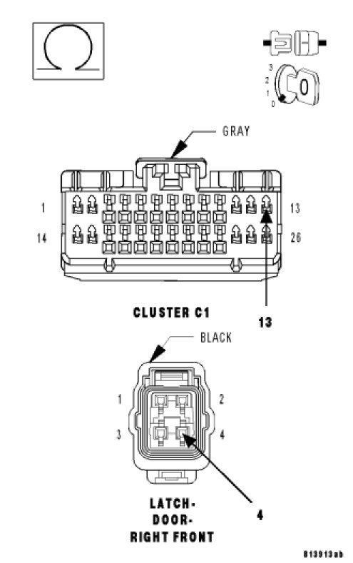 Remove either right door inner trim panels to gain access to the door latch connector.