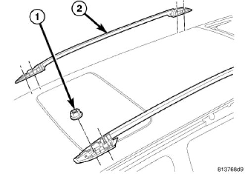 2. Install the two nuts (1) that secure each end of the luggage rack crossbars to the top of the vehicle. Tighten the nuts to 7 Nm (60 in. lbs.).