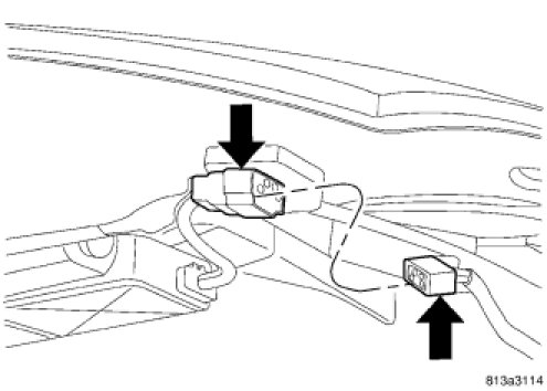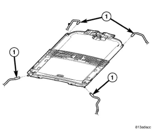 2. Raise sunroof module assembly (1) and guide it carefully into position.