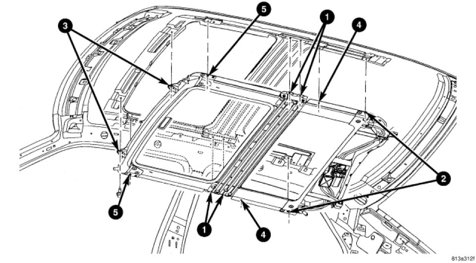 3. While supporting the sunroof assembly start the 12 attaching screws and tighten the attaching screws to 9 Nm (80 in. lbs.) using the sequence shown.