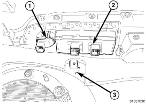 3. Using a flat bladed tool, remove the window/lock switch (2) from the door trim panel.