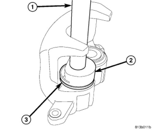 5. Seat dust boots (3) in caliper counterbores using Installer (2), Special Tool 9315, with Handle (1), Special Tool C-4171. Install each dust boot until it bottoms. Do not over-seat dust boot or damage will occur.