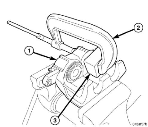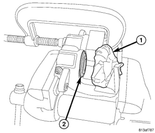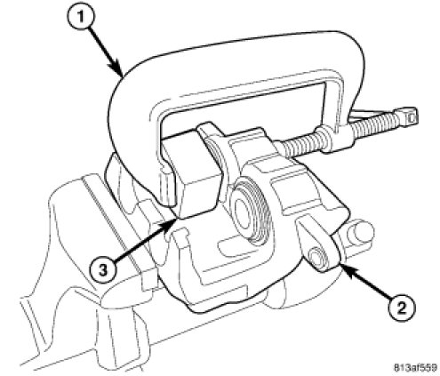 2. Mount caliper (2) in vise equipped with protective jaws.
