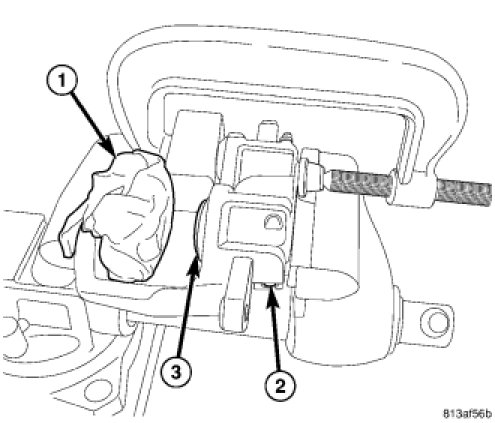 5. Place the padded block of wood (1) in outboard shoe side of caliper (2) in front of exposed piston (3). This will cushion and protect caliper piston during removal.