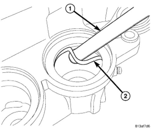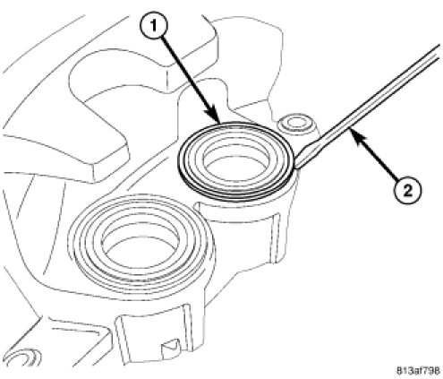 CAUTION: Use an appropriate tool (1) to remove piston seals (2) to avoid scratching piston bore. Do not use a screwdriver or other metal tool to remove seals.