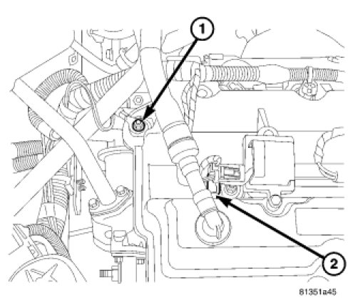 6. Connect ground strap (1) to cylinder head cover stud.