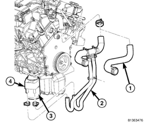 4. Connect coolant hoses (2) to oil cooler (4).