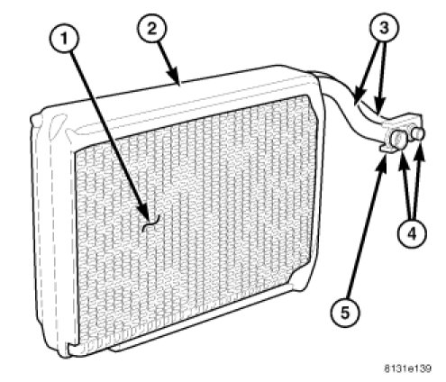 The A/C evaporator tubes (3) are connected and sealed to the A/C expansion valve by use of rubber O-rings (4) and a tapping block (5).