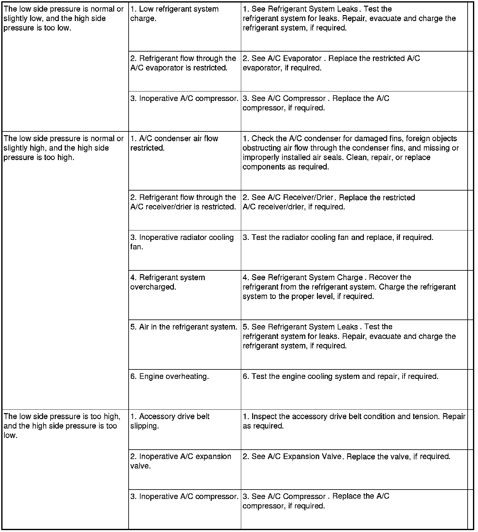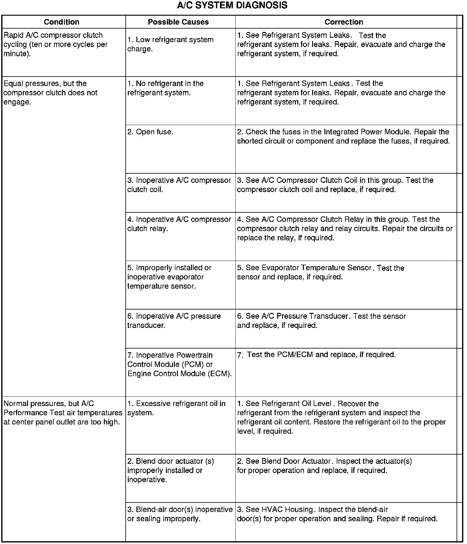 - A/C-heater controls set to Recirculation mode, full cool, panel mode, high blower and with A/C compressor engaged. If the A/C compressor does not engage, see the A/C System Diagnosis chart