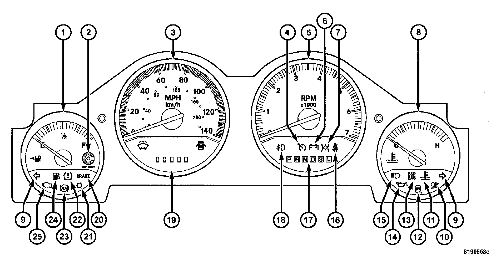 13. Electronic Stability Program (ESP)/ Brake Assist System (BAS) Malfunction Indicator Light - If Equipped
