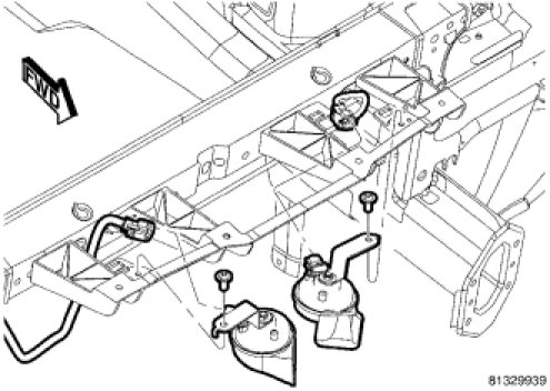The dual-note horn system features two electromagnetic horn units. The horn system includes the following major components:
