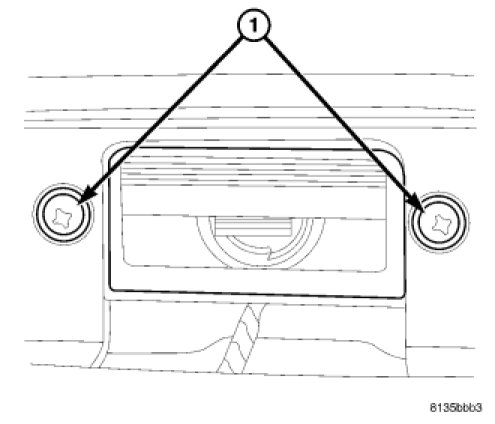 Maneuver the lamp unit up into rear fascia and install the two retaining screws (1).
