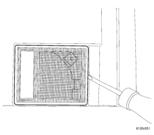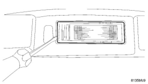 2. Using a trim stick (special tool #C-4755) or equivalent, gently pry out the top (toward windshield) side of the reading lamp lens.