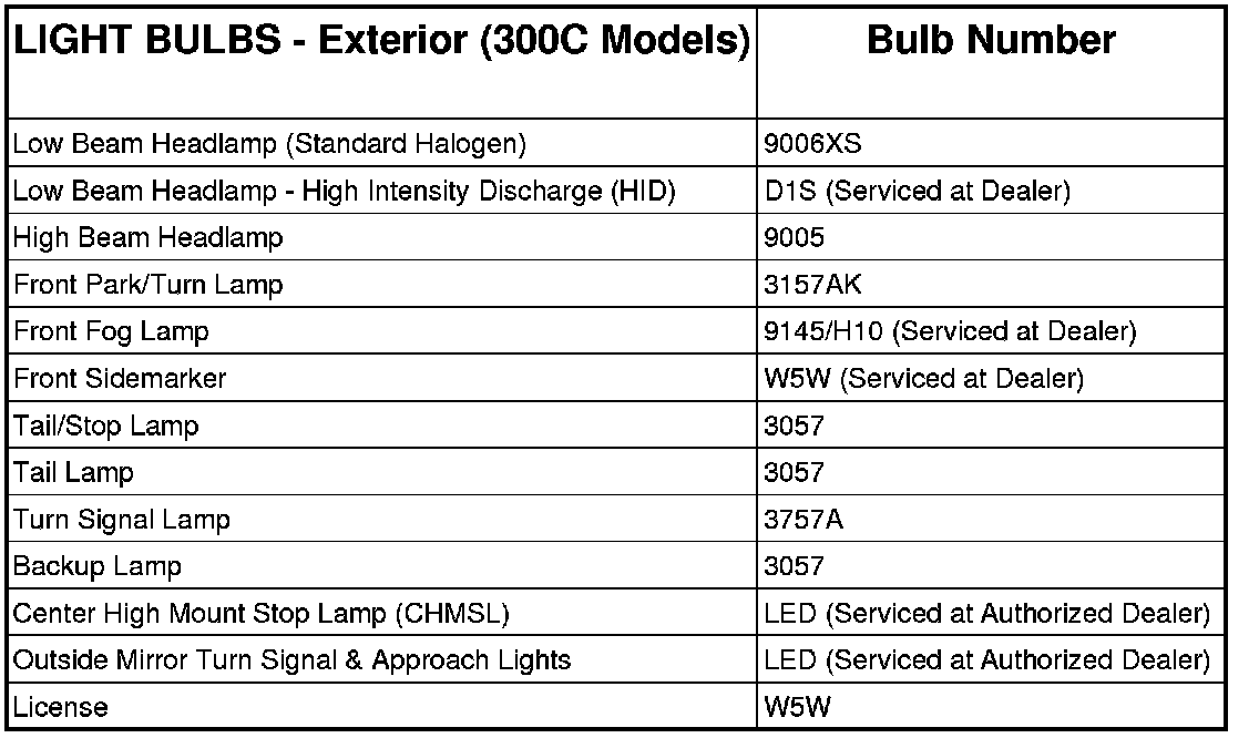 REPLACEMENT LIGHT BULBS - EXTERIOR